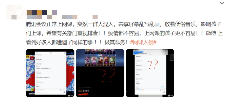 至于網(wǎng)課信息的泄露,一種可能,學生將自己的網(wǎng)課會議號或者密碼不經(jīng)意間,發(fā)布在社交平臺上,甚至有個別學里應外合,故意“泄密”;另一種情形,有人組建QQ群,有組織地入侵網(wǎng)課課堂,擾亂課堂秩序,還在QQ群內分享入侵的狀況。在群聊中,有網(wǎng)友表示未成年,稱自己輟學或者暫時無課,試圖搞惡作劇,并且無視自己的行為對其他學生造成了不良影響。